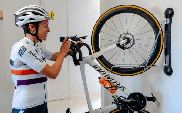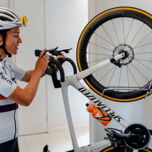 - Pivote de près de 160 degrés jusqu’à faire toucher le mur avec la pédale (route) ou le guidon (vtt)
